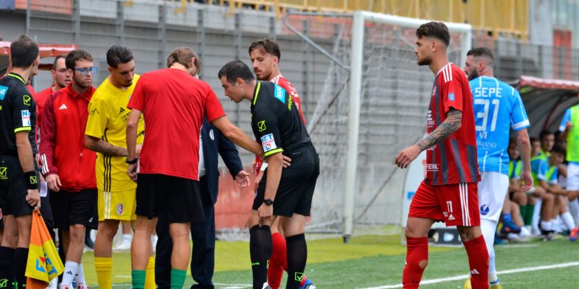 Al 7’ Rosolino resiste al ritorno di un avversario e cede il pallone a Messina, l’attaccante grigiorosso porta palla e pesca Said tra le linee che apre il gioco premiando il movimento sulla sinistra di Severino. Il classe 2005 punta il fondo e crossa sul secondo palo imbeccando Gaeta che tocca per l’accorrente Rosolino che da posizione centrale non riesce ad inquadrare lo specchio della porta spedendo la palla sul fondo. Con il cronometro che segna 7 minuti e 23 secondi la sfida viene interrotta per un infortunio occorso al direttore di gara Cristian Chirnoaga. Dopo aver ricevuto le cure mediche del caso, il fischietto della sezione di Tivoli fa riprendere la partita al minuto 13:33. Al 14’ ancora Angri pericoloso. Rosolino serve sul settore di destra Gaeta che si accentra e carica il sinistro. Il tiro del numero 10 doriano è deviato in corner.