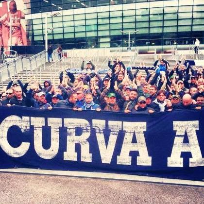 Squadre in campo, parte l’inno: anche all’Emirates non può mancare l’urlo della Champions. Uno spicchio di San Paolo si è trasferito a Londra.