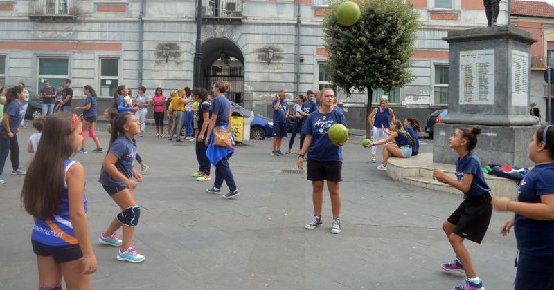 Oggi allenamento in piazza Cimmino davanti alla sede Comunale. Arzano continua a fare parlare i media della Campania. Oltre all’Arzano Volley si sono aggregati anche gli esponenti delle società di basket che hanno dato manforte alle ragazze della pallavolo.