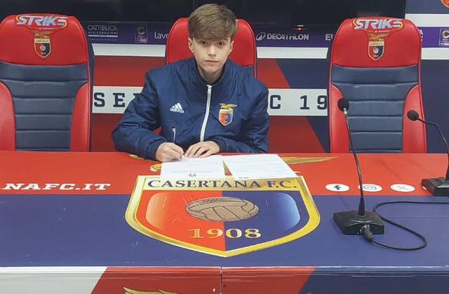 Da Poggiomarino al sogno del professionismo. Luciano Tonchino, classe 2013, ha firmato per la Casertana e farà parte del gruppo Under 13 Pro del club rossoblù, società che milita nel campionato di Serie C.