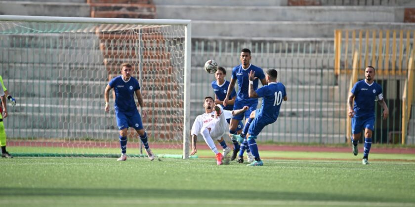 Ad affacciarsi per la prima volta nella metà campo avversaria è il Portici al 12′ con Castagna, colpo di testa alto. Dopo due minuti da azione d’angolo ci prova Petrosino che mette a lato.