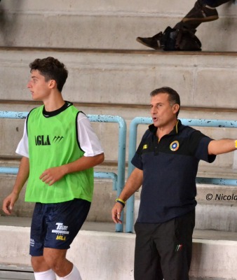Mister Valente schiera nel roster diversi atleti facente provenienti dalla juniores come: Losito, Valente e Natale Di Benedetto. Match molto equilibrato con i nerazzurri che cercano più volte la via del vantaggio con Cassanelli, Ruggieri e Di Liddo. Il Manfredonia non sta a guardare provando a rompere l’equilibrio, ma i nerazzurri biscegliesi fanno buona guardia. Il ritmo è equilibrato anche nella ripresa con la traversa che nega la gioia del gol ad Alessandro Losito. Nel corso della ripresa il Futsal Bisceglie esaurisce il bonus falli e quando manca meno di un minuto al suono della sirena, Di Liddo commette fallo, sesta infrazione e conseguente tiro libero per il Manfredonia che Spano non sbaglia.
