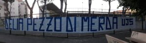 Un astio che i supporter gialloblù hanno palesato nuovamente con un duro striscione esposto quest’oggi all’esterno dello stadio Romeo Menti: “D’Elia pezzo di m…”. Un messaggio che la Curva Sud ha deciso di rimarcare anche sulla propria pagina Facebook, diffondendo la foto dello striscione con un’incisa didascalia: “Non sei degno di questa società, D’Elia vattene”. Insomma, i tifosi gialloblù ancora una volta fanno sapere da che parte stanno, ossia, da quella del socio Franco Manniello, nonché ex patron delle vespe.