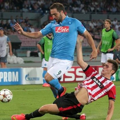 Napoli-Athletic Bilbao 1-1. Higuain risponde a Muniain, finisce in parità l’andata del preliminare di Champions League