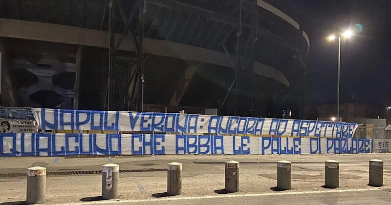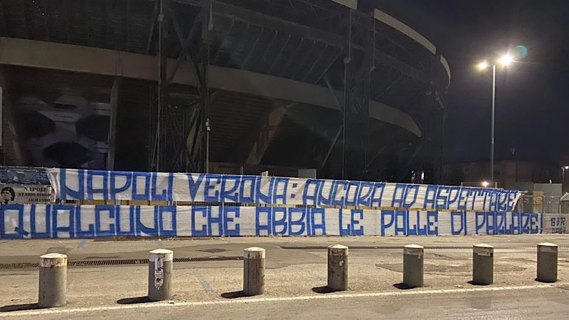 All’epoca dei fatti, la società del presidente Aurelio De Laurentiis era in silenzio stampa e quindi non c’è stato modo per capire i motivi della debacle azzurra contro i veneti. Proprio in merito al match Napoli-Hellas Verona, i tifosi partenopei chiedono spiegazioni. La Curva B ha sollecitato il club ad esporsi e a fare chiarezza sulle cause di una prova a dir poco deludente della squadra azzurra contro gli scaligeri, la quale appunto è costata ai campani la qualificazione alla prossima edizione della Champions League. Il tifo organizzato partenopeo, in modo esplicito, ha chiamato in causa la società esponendo uno striscione all’esterno dello stadio Diego Armando Maradona: “Napoli Verona: ancora ad aspettare qualcuno che abbia le palle di parlare!”.