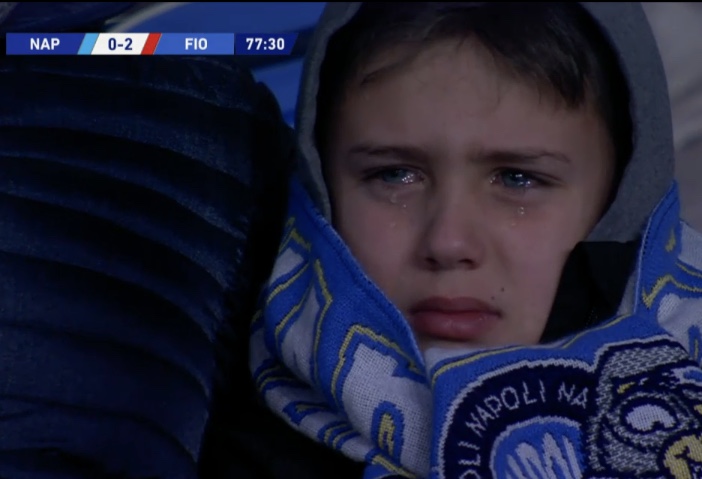Dopo la terza sconfitta consecutiva incassata in campionato sabato scorso allo stadio San Paolo contro la Fiorentina, era balzato agli occhi di tutti il momento di sconforto del piccolo Mario, scoppiato in lacrime sugli spalti a causa dell’ennesima prova a dir poco soddisfacente dei propri beniamini. Il giovane tifoso, ripreso a sua insaputa dalle telecamere, si era lasciato andare ad piccolo sfogo sfociato in pianto che in poco tempo ha fatto il giro dei social.