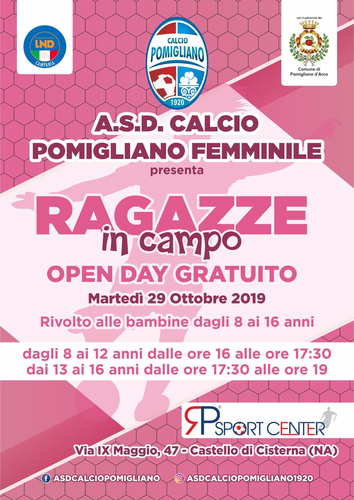 POMIGLIANO D’ARCO. Il Calcio Pomigliano Femminile lancia il progetto “Ragazze in Campo” rivolto alle bambine dagli 8 ai 16 anni. Il progetto si articola in open day gratuiti ed il primo si svolgerà marted√¨ 29 ottobre alle ore 16 alla presenza del sindaco di Pomigliano d’Arco il Dott. Lello Russo e dei vertici della Lega Nazionale Dilettanti.