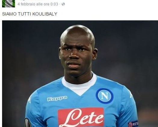 Napoli si mobilita a difesa dell’integrazione, dell’uguaglianza, della pari dignità di tutti. Prende sempre più piede tra i tifosi azzurri l’idea lanciata attraverso il web gioved√¨ scorso dal direttore tecnico rarinantino Mario Marsili e dall’imprenditore Gigi Balsamo, che all’indomani della vergogna dell’Olimpico hanno pensato ad un modo semplice e spontaneo per affermare che “Siamo tutti Koulibaly”.