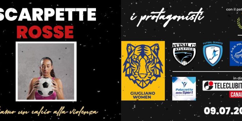SAVE THE DATE Scarpette Rosse – diamo un calcio alla violenza ⚽️👠 Con lo scopo di raccogliere fondi da donare all’Ospedale di Giugliano in Campania per il reparto Oncologico, ma soprattutto per lanciare un messaggio sociale di integrazione sportiva al femminile, il 09.07.2021 alle ore 19:00, presso il Palazzetto dello Sport di via Pigna, scenderanno in campo l’Asd Giugliano Women, l’Atletico Football Club Futsal C5 ed il Futsal Quarto Femminile.