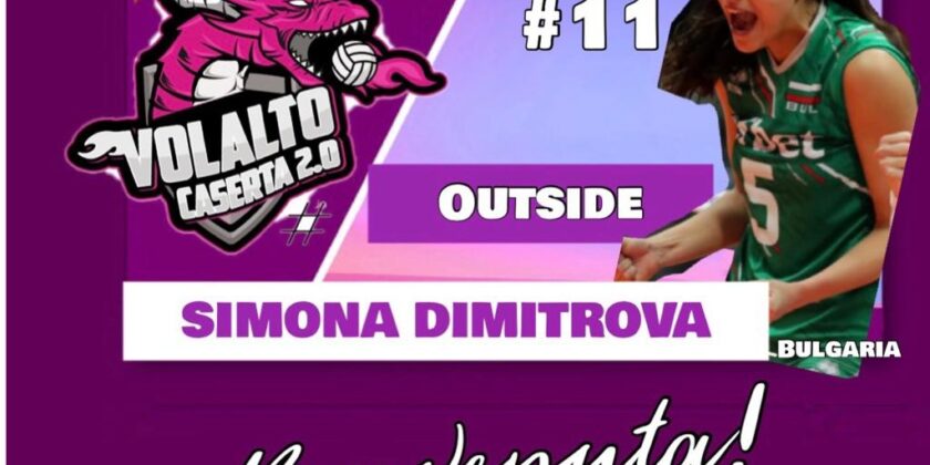 Schiacciatrice nel senso letterale del termine, Simona Dimitrova,bulgara, 26 anni, 185 cm, arriva a Caserta con la sua “schiacciata terribile”. Nasce a Plovdiv il 17 luglio 1993 e fa parte della nazionale della Bulgaria. Simona ha partecipato al Campionato mondiale U23 FIVB 2015, ai Giochi europei 2015 di Baku e al Gran Premio mondiale FIVB 2015. Ha giocato nel CSKA Sofia, nel Tfse, nel VC Maritza e nel TVS Dudinghen. Approda a Caserta per scatenarsi e vincere! BENVENUTA SIMONA!